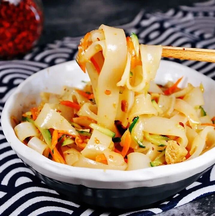 凉皮是一种凉拌着吃、口感绝佳的西北面食小吃。调好的凉皮,皮子白里透亮、面筋因为吸附酱油而泛黄、黄瓜丝现着绿、辣椒油敞着红,好吃又好看。