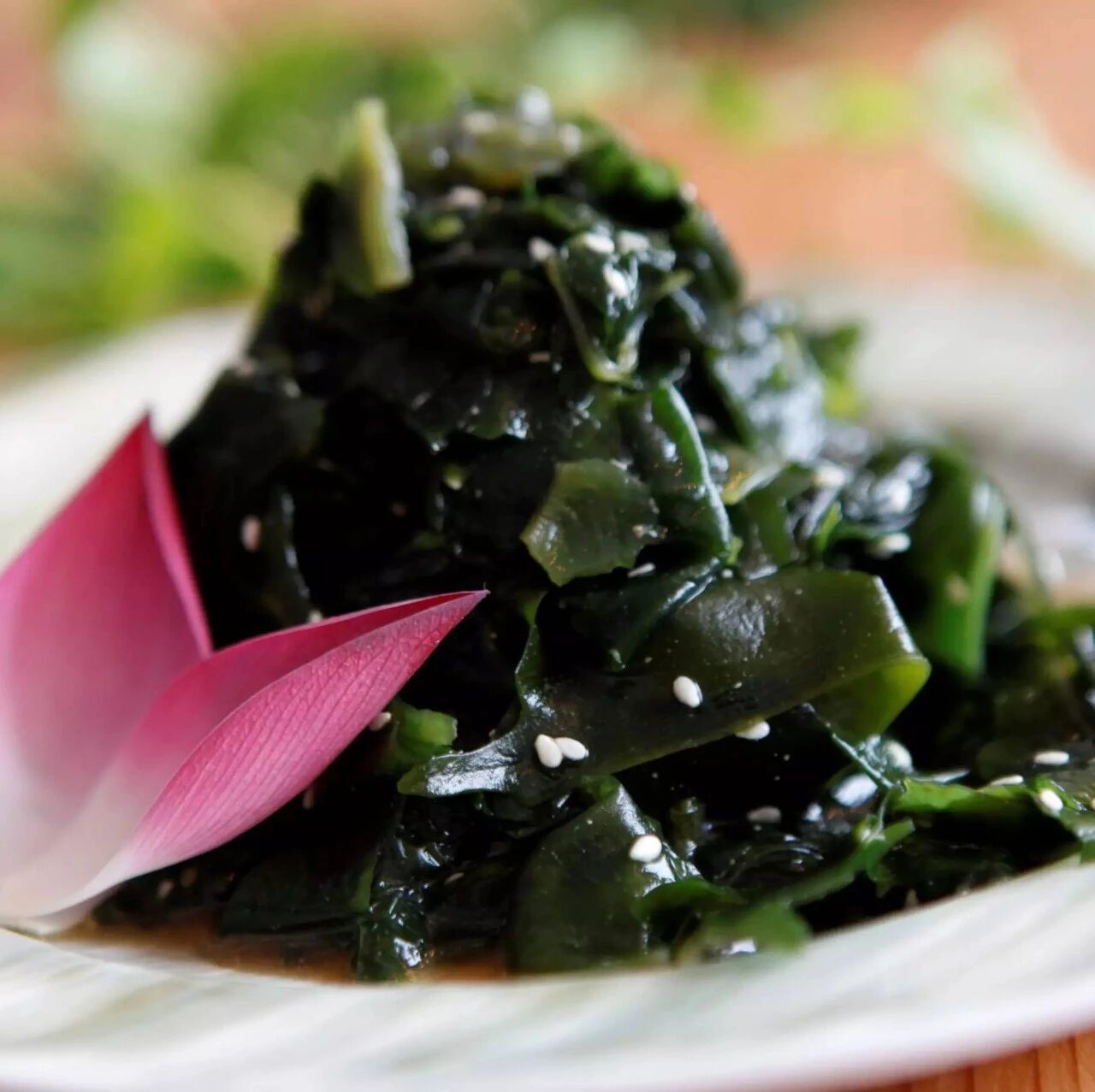 裙带菜含有多量的碘和钙,其蛋白质和铁的含量比海带还要多。裙带菜有很多昵称,聪明菜、美容菜、健康菜等等。