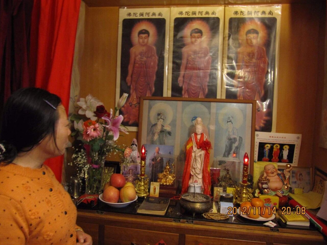 我到佛龛上香,跪在佛前举着香,看着阿弥陀佛、观世音菩萨我禁不住泪流满面,心里祈求大慈大悲救苦救难的观世音菩萨呀,快快把我母亲救回来吧,祈求观世音菩萨显大灵感圣迹,希望母亲能够起死回生!
