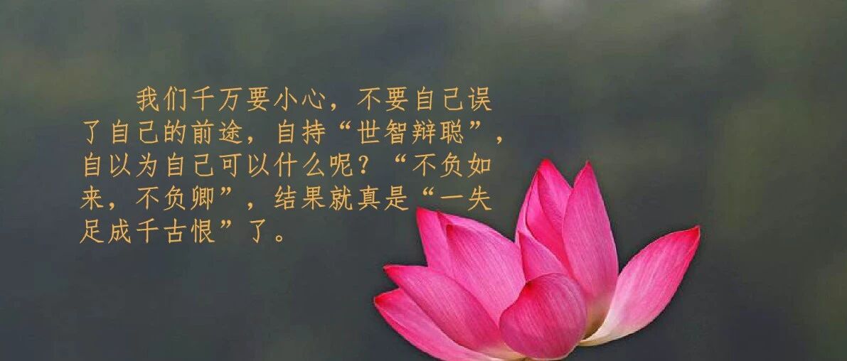 所以我们千万要小心,不要自己误了自己的前途,自持“世智辩聪”,自以为自己可以什么呢?“不负如来,不负卿”,结果就真是“一失足成千古恨”了。这里的“千古”,就不是形容词语了,这里的“千古”就真是万劫千古了。