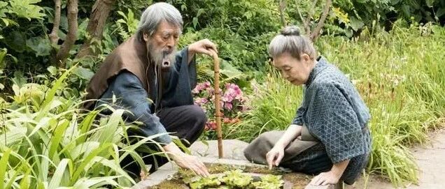 因为艺术家的身份和名气,老先生家每天慕名来访的人络绎不绝。有位旅馆老板特意从外地跑来,想请熊谷守一为他的店书写牌匾,要多少钱随便开价。这让负责接待的熊谷守一夫人犯了难,老太太告诉旅馆老板,他正在忙(其实是在院子里闲逛)。可是架不住来访者的一再请求,树木希林扮演的妻子答应去帮忙问一下。