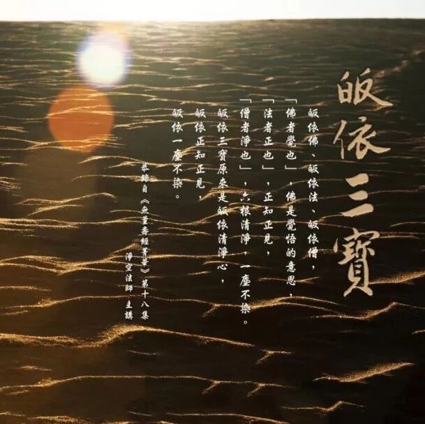 「夫三宝者,千生难遇,万劫难逢,皈依者,福增无量;礼念者,罪灭河沙。譬如灵丹之妙药,疗百病而蠲除。冥冥黑夜中,三宝为灯烛;滔滔苦海内,三宝为舟航;焰焰火宅中,三宝为雨泽。」