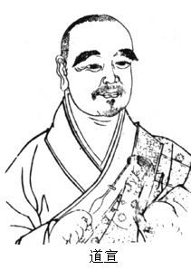 道宣法师(596~667)唐代律僧。又称南山律师、南山大师。为南山律宗之祖。浙江吴兴人,一说江苏润州丹徒人,俗姓钱。字法遍。十六岁出家,先 后随日严寺慧頵、大禅定寺智首学律。后住于终南山仿掌谷(长安之南),营建白泉寺,研究弘宣四分律,其宗派称南山律宗。曾至各地讲说律学,亦参与玄奘之译 场。严守戒品,深好禅那。历住崇义寺、丰德寺、净业寺。显庆三年(658),奉敕任长安西明寺上座。未久,撰释门章服仪、释门归敬仪等。龙朔二年 (662),高宗敕令僧尼须礼拜君亲,师与玄奘等上书力争,此事乃止。干封二年二月,于净业寺创立戒坛,诸方前来求戒者二十余人,为后世建筑戒坛之法式。 于是年十月入寂,世寿七十二,法腊五十二。谥号澄照。