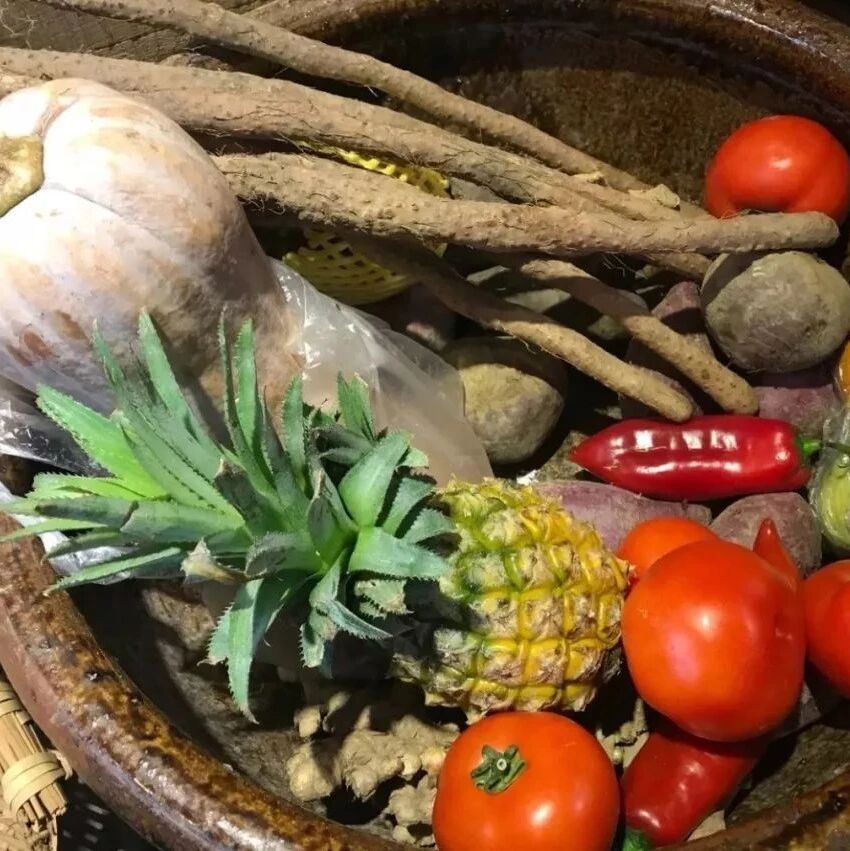 这间店有些“奇怪”:一进门的地方,放着一口直径半米的古朴大缸。南瓜、西红柿、黄瓜、山药、白菜、胡萝卜、西蓝花、……花花绿绿地摆满了各种新鲜的应季健康食材。