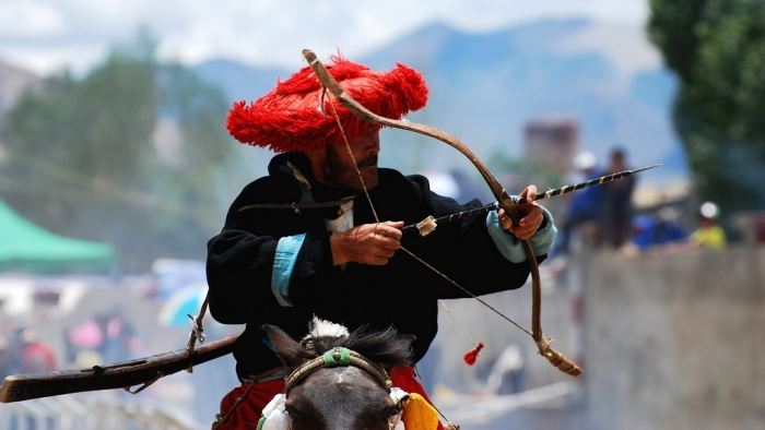 像征着力量与勇悍的达玛节是西藏江孜一带民间的传统节日,达玛,藏语为跑马射箭的意思,传说起源于1408年,始于江孜法王绕丹贡桑为纪念其德高望重的祖父而举行的祭祀活动,期间除举行一系列宗教活动, 还举行跑马、角力、举石等娱乐活动。1447年,扎西绕丹帕统治江孜时,又增加了赛马射箭等竞技娱乐项目,节日形式从此基本固定下来并一直延续至今。过去达玛节于每年藏历4月19日左右举行,现在达玛节时间多在农闲的7月20日举行,一般持续一周左右。江孜达马节在继续保留传统体育文化项目的同时,不断推陈出新,使节日内容更加丰富,形式更加多样,规格档次一年比一年高。