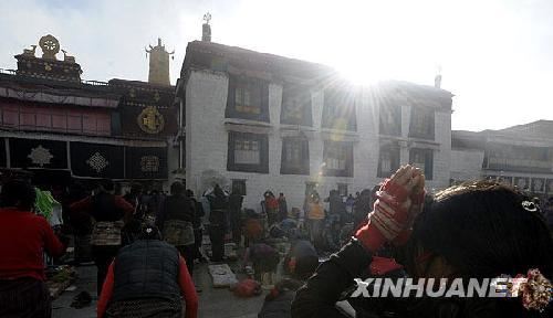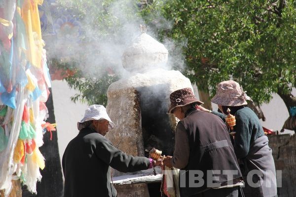 在围绕大昭寺的八廓街上,每个煨桑炉前挤满了信徒,他们争先恐后地往香炉里添加松柏枝、青稞粒和一种叫桑做的植物,桑烟弥漫了整个布达拉宫广场和人潮涌动的八廓街。而在布达拉宫,前 来转经的信徒也明显增多。