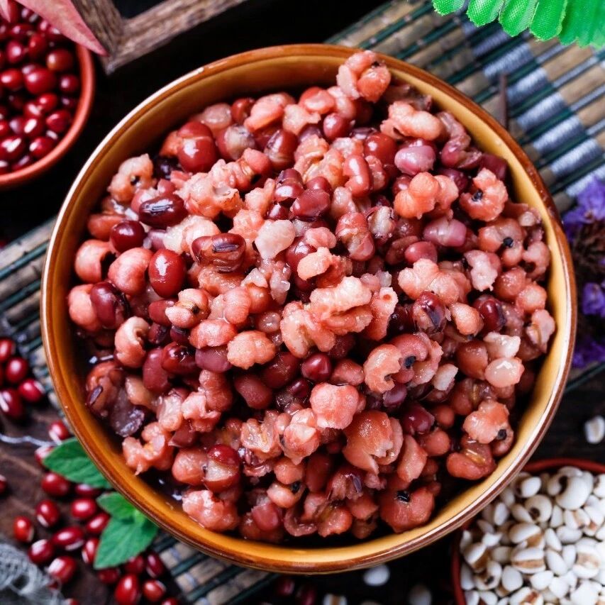 水液不能随气血流动,滞留在人体细胞之间,使人体迅速膨胀起来。而红豆含有丰富的B族维生素和铁质,还含有蛋白质、脂肪、糖类、钙、磷、尼克酸等成分,具有清热利尿、祛湿排毒作用。红豆50克,红枣5颗,红皮花生50克,黄冰糖30克1、食材泡水2小时,之后洗净,加足量清水,电饭煲煮粥功能开启即可银耳一朵,红豆100g,薏米100g,桃胶10g,冰糖适量红豆200克,糖桂花15ml,冰糖50克,淮山药50克,陈皮一小把2、将700ml清水倒入压力锅中,下入红豆和冰糖,陈皮用汤料包包好一并放入;6、锅中倒入少量清水,水烧沸后将山药小丁放入,焯水1分钟,再取出用冷水冲凉并沥干水分;材 料: