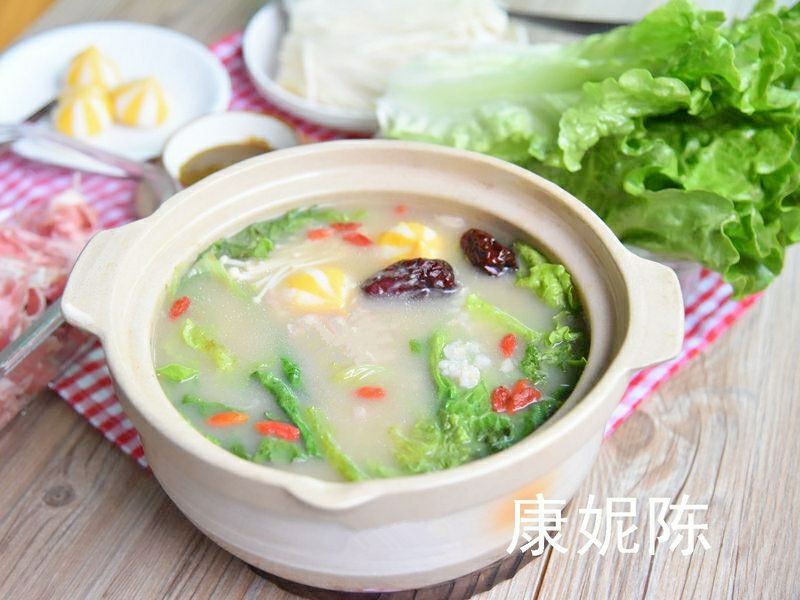 2. 萝卜削皮切块,把糙米、萝卜和姜片一起放在汤锅里,煮沸后转中小火煲一小时;3. 煲好的萝卜糙米粥,不用来做火锅底就这样吃也很好的;4. 将糙米粥倒入煮锅中,放入红枣和当归煮沸就是糙米粥火锅底;觉得不错,请在下方点