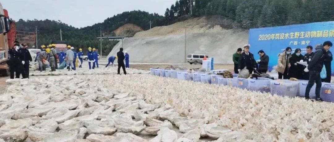 2020年12月15日,农业农村部渔业渔政管理局联合广西壮族自治区农业农村厅、福建省海洋与渔业局,在广西壮族自治区南宁市成功举行了2020年罚没水生野生动物制品销毁活动。