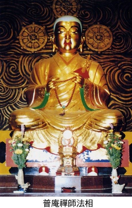 然而,却有一位土生土长的中国僧人,为自己在佛殿中找到了一个位置。一般佛寺大殿正中法坛,供奉释迦牟尼,佛坛背后,通常塑一堂海岛观音图。其中就有一尊称为普庵祖师的中国僧人,这位普庵祖师,乃是土生土长的江西宜春人。