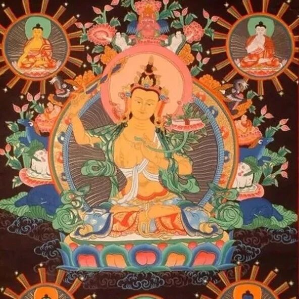 贤仁注曰:密咒功德不可思议,但非通达者易怀疑不信。盖密咒能生起功德,乃仰仗该佛菩萨的大悲愿力,及六宝(或四宝)传承加持力,还有持咒者本身的心力相合而出生,故其力用大也。若不具足以上三力,则功德小矣。至于无传承而自修自学者,能有多少效用,会者自知。常有人从书上或网络自行学了一些密法密咒,但持诵无验而生讥谤,故今略而谈之。望有心学习者,能虚心从师而学之,并多用功修学(建议持诵至少十万遍为基础),才能有「实力」来济度有缘众生。注:此文殊菩萨往生咒真言亦是大日如来报身真言——亦是文殊八字大威德真言——末后加梭哈是成就之意。梵文罗马拼音:om a vi ra hum ka ca rah下品悉地阿罗波左那。是名出悉地。(此真言亦是文殊师利法王子五字心咒)能生根茎遍满四方。诵一遍如转藏经一百遍(若诵一遍如诵八万四千十二围陀藏经除行人一切苦难)即入如来一切法平等。一切文字亦皆平等。速得成就摩诃般若。诵两遍除灭亿劫生死重罪。文殊普贤随逐四众围绕如备。是慈无畏护法善神在其人前。若诵三遍三昧现前。若诵四遍总持不忘。若诵五遍速成无上菩提也中品悉地阿尾罗吽欠。是名入悉地。(此真言亦是大日如来心咒亦是文殊八字大威德真言)如是大日如来应乃毗芦遮那佛报身——应是五方佛同体报身也——能生枝叶遍满四方。光明光耀入佛法界。名入悉地。若诵一遍如转藏经一千遍(是名降伏四魔六趣满足一切智智金刚字句也)上品悉地阿[鍐-凶+(鬯-匕)]嚂唅欠。是名秘密悉地。亦名成就悉地。亦名苏悉地。苏悉地者遍法界也。成就佛果证大菩提法界秘言。光明遍满唯佛与佛能入此门。如是毗芦遮那佛法身——应乃一切诸佛同体法身也——缘觉声闻不能照。此亦名秘密悉地。若诵一遍。当如转藏经一百万遍。出悉地从足至腰。入悉地从脐至心。秘密悉地从心至顶。如是三悉地。出悉地化身成就。入悉地报身成就秘密悉地苏悉地法身成就。实是三种常身。正法之藏。法身遮那具足之体。五部三部真实之源。是故稽首礼毘卢遮那佛。文殊菩萨吹肉往生咒:嗡ōng 阿à比bǐ惹rà 吽hōng 嘎gā杂zá惹rà 食肉前,诵此咒七遍,吹气于肉上,可除食此肉过失,所食畜生则得生善趣。另有声明,不可以因此咒有侥幸之心,而放纵自己吃肉的恶行——此陀罗尼,能大利益,怜愍一切有情诸众生故,能断诸三恶道,能为一切作法。如佛现在处世无异,此是文殊师利菩萨自身,为利诸众生故,自变其身为八字咒神像,能满一切有情意乐等事。若人能暂闻、忆念此陀罗尼者,即能灭四重、五逆等罪,何况常念诵者。文殊师利童子菩萨,八字陀罗尼,为诸有情,除罪生福,成就事业,具满一切众生诸愿之法。非口所宣能尽其福,勤心念诵,证者乃知。设使一切诸天,有大福德,及十地一生补处,于中二大威力人,亦不能夺其福德,所作事业,不能为障,持八字人福,何况余小天人,及无威德龙神鬼,而作障难。汝金刚菩萨,于我灭后,以汝神力,于赡部洲,广宣流布。使薄福众生,持此八字陀罗尼,同汝神力,令速超于三界。加功不退,勿就余法。日夜精勤,作法念诵,不计日月,毕见文殊童子,为现其童子身。悉了一切事,断一切苦果。于现身中,超入六地,具六波罗蜜。即能悉舍一切,进修不退,速入八地。任运自在,分身百亿。随类教化众生,悉满其愿,见身获报如是。金刚菩萨,若男女人,于此陀罗尼,发心念诵者,不能广办供养,在家种种迫迮,不可具依法则,但能禁其身三口四,制勒三痴。如上十恶,永绝其源者,即念诵此陀罗尼,忆持不忘。依时随分不阙多少供养,渐渐亦得成就。除不正心,不发大乘菩提之心。于三宝处,起不善心,行恶业之人,一切小法尚不成就,何况佛之大法。此大威德八字秘密心陀罗尼,若有闻者,如从佛口禀受此陀罗尼句义。亦如佛住世,无有异耳。能与众生,于黑暗中,作大明灯。善男子,若有男子女人,发心能忆诵此陀罗尼一遍者,即能拥护自身。两遍,能护同伴。三遍,即能大拥护国王,住十地菩萨亦不能越过此陀罗尼力者。何况诸小天魔龙神,鬼类恶众生等,而能障碍。若欲着衣之时,当咒衣七遍,能除一切内外恶毒,及诸灾难。若洗手、面时,当咒水七遍,能令一切众人,生贵重心。所有诸恶人,见者悉当降伏。自当敬重,日夜忆念,见即欢喜,心无舍离。若人患身体支节疼痛。呪暖水一百八遍。洗浴即得除愈。若每日早朝,以水一掬,咒七遍,饮之,在身所有恶报,悉得消灭。何况无灾厄者。及诸三业者,亦得除愈,并得寿命长远。若见恶人及有怨家,当须念诵此呪。所有怨家,起恶心者,当自降伏;恶心即灭,慈心相向。若人或患疟病,持此咒者,视患疟人面,切诵此呪一千八遍,其患即除。若欲入阵,当取牛黄,书写此咒,带于身上,一切刀仗弓箭鉾槊,不能为害。是故劝念一切有情,行住坐卧,当须念咒,忆持不忘。时时每诵一百八遍,勿令断绝。常得一切众生,见者皆来归伏,恶人自当退散。若能每日三时,念诵各一百八遍,所作称意,所求诸愿,悉得随心,一切皆得圆满具足,得大富贵,所游无障。自在恣情,受诸快乐。设临命终,即得圣者文殊师利童子,亲现灵仪,为说大乘深妙法藏。闻法心大欢喜,即得普门三昧。得此三昧已,于烦恼生死,当永隔别。即与文殊圣者及大菩萨,同为眷属。若有比丘、比丘尼、善男子、善女人,依法受持,读诵书写修行,现世成就一切吉祥,诸事圆满,寿命长远,众人爱敬,生珍重