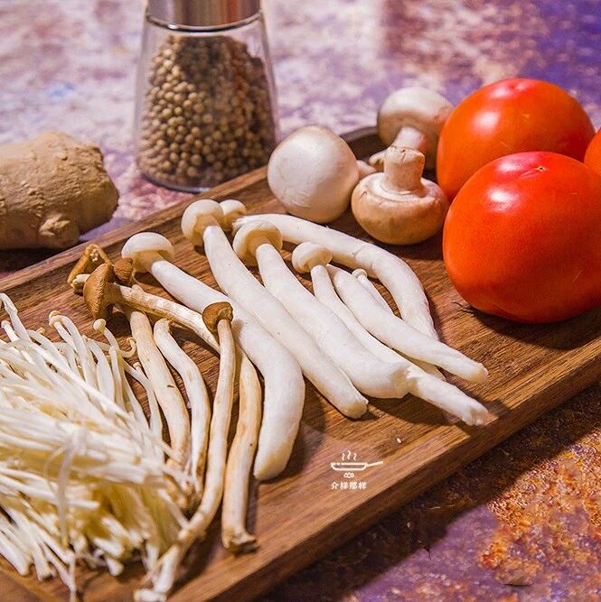1. 白玉菇去根洗干净,香菇洗干净切片,胡萝卜洗干净切片;