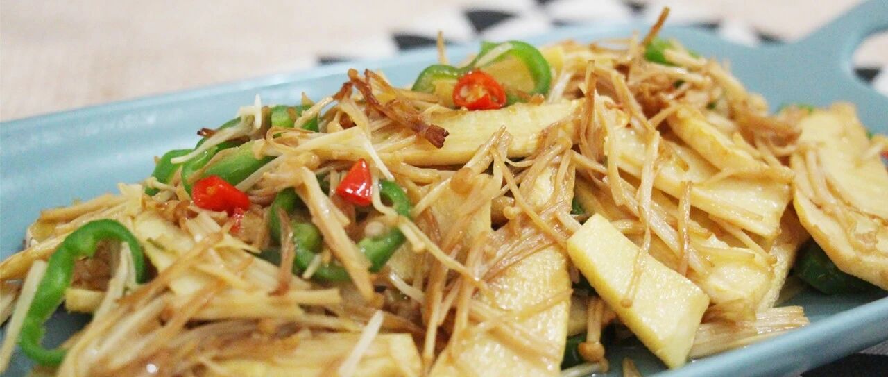 主料:冬笋500克、金针菇150克、青椒半根、指天椒1根