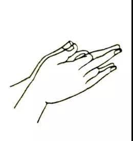 两手合掌,屈入二食指和二无名指,指甲相触,二大拇指合并微屈,不要碰到食指,大拇指和食指之间,犹如马口。