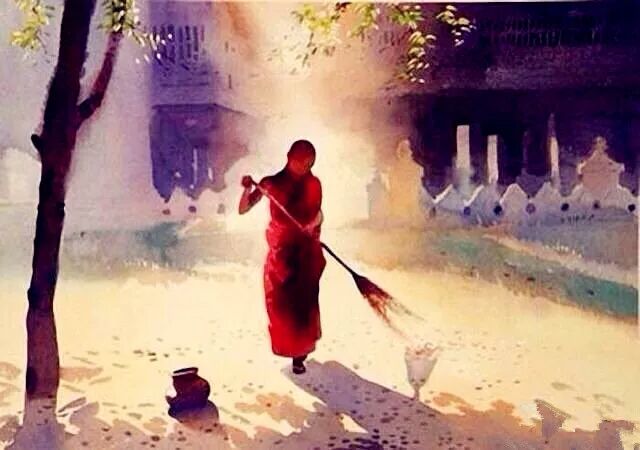 释迦牟尼佛有一个弟子 ——周利槃陀伽,他出家以后,释迦牟尼佛告诉他“扫尘除垢”四个字,他学了三个月都记不住,但是最后他能够大彻大悟。佛陀授记他说,周利槃陀伽是他所有的声闻弟子当中,转变心意最殊胜的人。他天天就是扫地,扫到最后,佛陀这样为他授记。