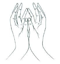 得法后先将咒念熟,然后上座。上座前,一净手,二设备一切,三礼佛。房内不必焚香,尤忌好香多烟,故坐在床上为宜。如出门或不便,即心拜心香可也。 有八忌:一忌风处坐;二忌饱后坐;三忌下座即大小便,必得过十分钟;四忌贪坐。如不依规矩,一时高兴多坐,后即退转,故以一小时至两小时为度;五忌大声持诵而伤气,最好金刚持,即唇动无声,自己听见;六忌身体活动,必致腰痛,伸腰当慢,不必过于正直;七忌求见光见佛;八忌见有幻像时,执取而生疑。如闻妙香,或闻妙音,自以为喜,皆可致病。此法既有手印,直证无相门,以心灵为主,不许观光观字。与西藏修法不同也。 有三要:一要在上座时,手印无论如何不能散开。此是身密,所以戒杀盗淫三恶性也;二要口持咒勿停,金刚持,不可说话,此是口密,所以戒口业四恶也;三要心空如佛,自己即是四臂观音。观一切众生,如醉病之佛,一醒即愈,同体不二。此是意密,所以戒贪瞋痴三恶也。此一法中,戒定慧三法具足,即三业清净。 修此法后,平时用功最为切要,宜时时注意如下: (一) 不许再犯杀盗淫妄诸罪业,时时改除习气,否则学法无益; (二) 不许起贪瞋痴诸邪见,时时求开智慧,处处观空,学习布施; (三) 不许轻慢他法、及未修行人,当平等慈视。不可求神通及名闻利养; (四) 常念恭敬观世音菩萨,及大愚金刚上师之慈悲,并尊重自己之佛性,知人人本可成佛,当发救度众生之愿,即此便是供养; (五) 当尽孝悌忠信诸义,圆满世法。人事尽,方可入佛。 行者应供养四臂观音像一尊。无力者,或无处请者,可用他像代之。如实无力,不供亦可,因处处是佛也。 修时以黄布或其他净布,包盖手印,勿儿戏结印。 念咒以音准为最要,可参考音标。 坐时杂念纷起,反而更乱。此是好,不是坏,切勿疑而中止。只要不理,觉得心乱,即顾到持咒,自然心思安密而定矣。如开首即求无念,便是压迫,切切不可;况无念者,不是止灭,止意念如木石也,只是有念而不着。如通衢大道,一切车马人物,非不往来,非不见闻,只如过而不留,是名无念。 多思多虑之人,每日精血亏耗,久久不足,关系事业甚巨,尤要多坐。但每日可坐半小时,勿间断,必可益寿延年,免诸灾祸。此亦乱世避劫之一法也。 大莲花手印结法说明 两手虚心合掌,置于胸前。两大拇指、两小指指头、两手掌根相抵住,其余手指各相对、微弯曲,中间相隔约半寸。修时要以黄布包盖手印。示意图: