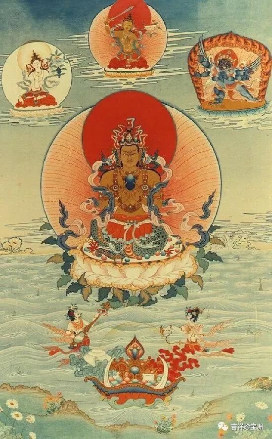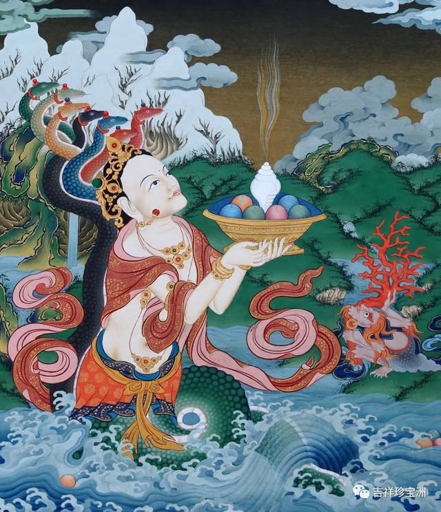此法是喇嘛特尼仁波切的伏藏法,加持力很大,明观念诵,十方龙宫四海之内皆会放大光芒,自他有情福报也会在刹那间,如枯木逢春一般枝繁叶茂灼灼其华,如万千摩尼之宝加身,永不临一切苦厄。