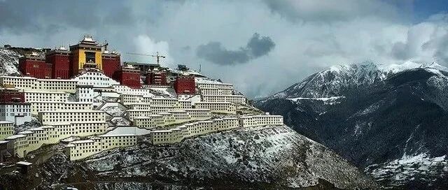 如此大规模、高级别的佛学院,最牛的还是它的建筑过程,你能想象在这样偏僻的山区,海拔4800米的地方,山坡上修建着一片雄伟得像小布达拉宫的建筑,雪山下矗立着塔吊是件多么奇异的事。