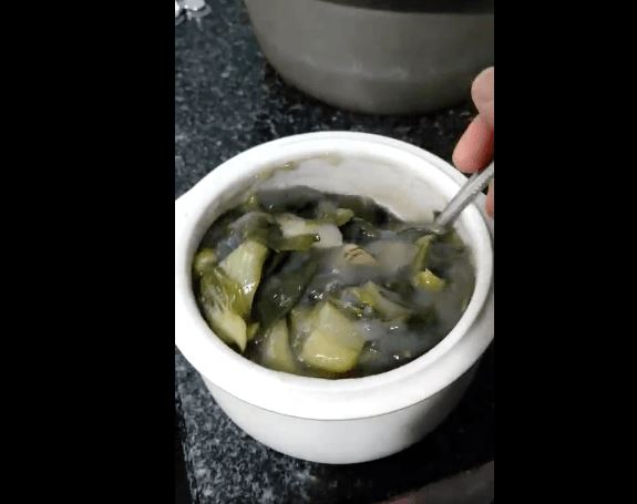 不加油和糖的青菜藕粉羹,只放了一点点盐,来回搅拌,一碗就是早餐。