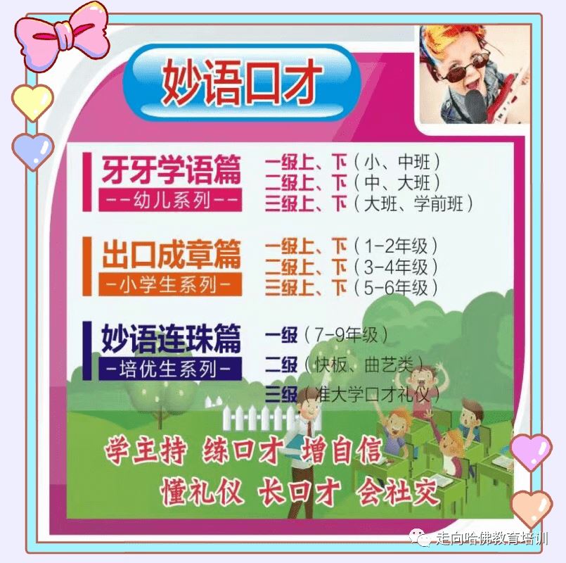 嘉言妙语口才: 适合于中班至六年级学生 学主持,练口才,增自信,懂礼仪,会社交 。