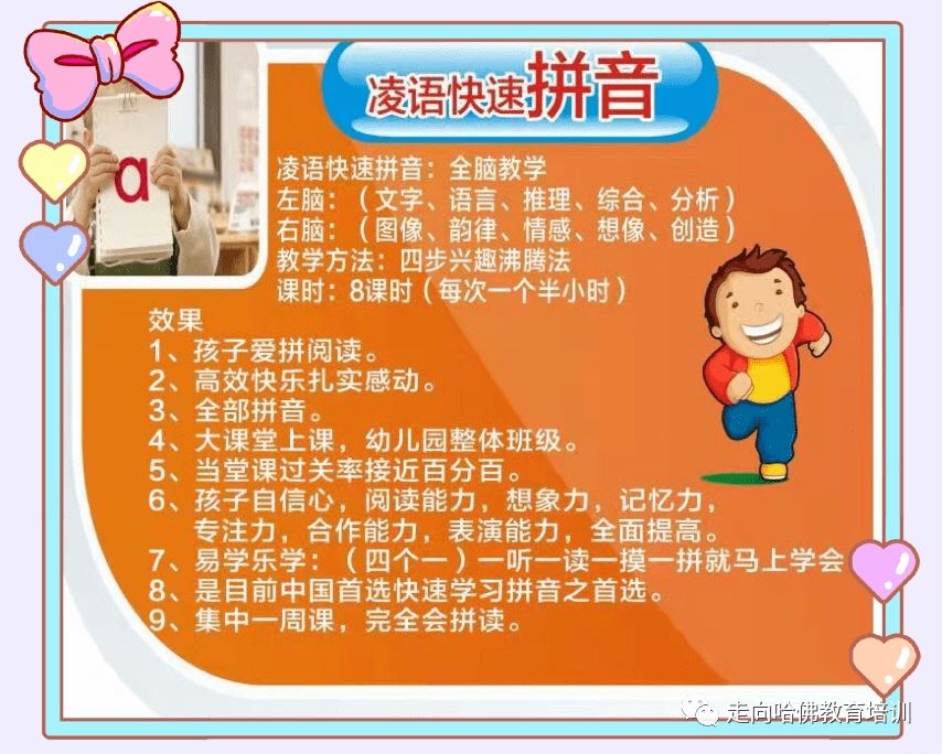 凌语特色课程: 适合于幼儿园中班至小学一年级学生,快速提升孩子的拼音,计算及识字能力 。