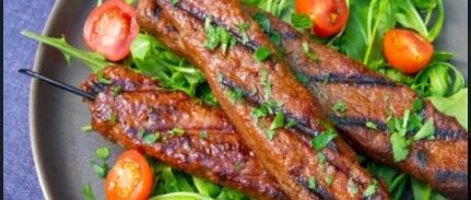 将Beyond Beef™烤肉串放在刷过油的烤架上。在一侧烧烤中高4分钟,翻过来再烤3-4分钟。
