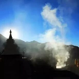 一边念诵一边观想我们供养的香“上感诸佛、下施众生”,给我们带来身心上极大的加持。