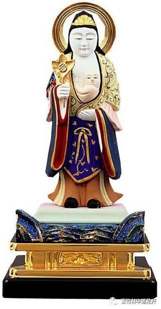 经文:若有女人不宜男女。或在胎中堕落断绪不收。皆由四大不能调适。或被鬼神作诸障难。或是宿业因缘不宜男女。应取白氎或一肘或一搩手或长五寸随意大小。画诃利帝母。作天女形纯金色。身着天衣头冠璎珞。坐宣台上垂下两足。于垂足两边画二孩子。傍宣台立。于二膝上各坐一孩子。以左手怀中抱一孩子。于右手中持吉祥果。画师应受八戒。其彩色中不用皮胶。画像成已。净治一室严仪涂拭。以香涂作一方坛。置像坛中。以种种华散于坛上。复以甘脆饮食乳糜酪饭及诸果子阏伽香水。烧沉水香而用供养。像面向西持诵者面东。对像念诵每日三时。时别诵一千遍。取月生五日起首。先诵十万遍。然后对像前念诵。所求一切事皆悉圆满。