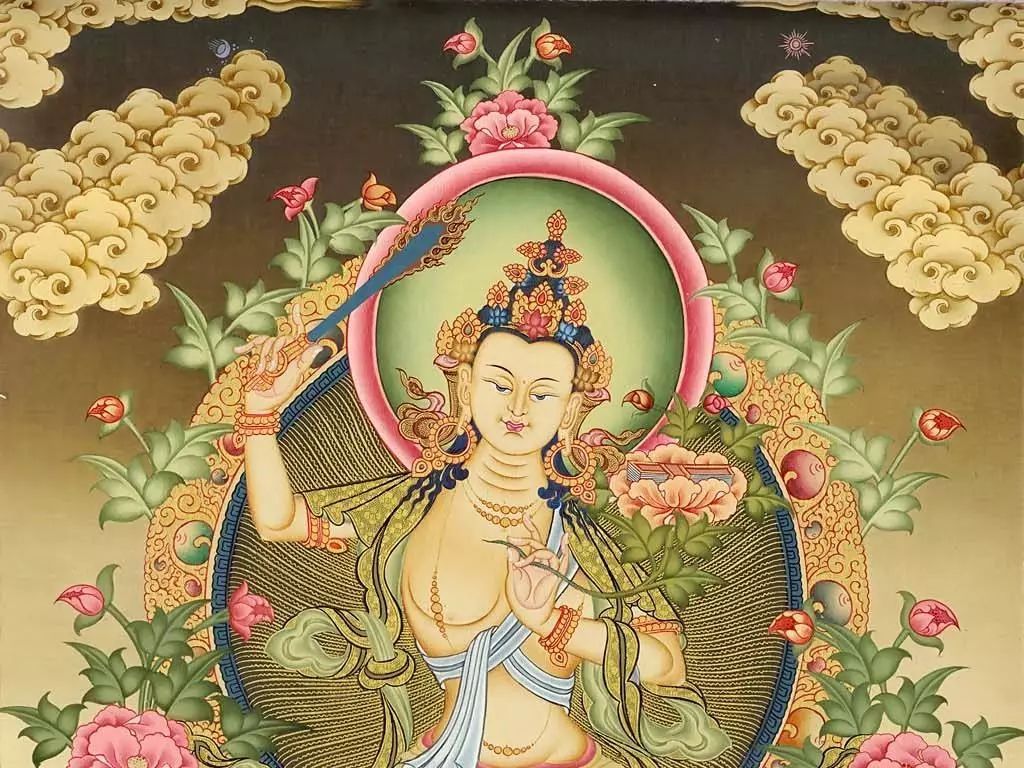 文殊菩萨,全称大智文殊师利菩萨。古译:妙德,妙首,普首,濡首,敬首。大日经曰:妙吉祥、文殊或曼殊是妙之意,师利或室利是德或吉祥之意,简称为文殊。