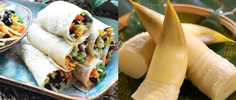 民间有“尝鲜无不道春笋”的佳话。 立春之后出土的春笋非常好吃,笋体肥厚,洁白如玉,肉质鲜嫩,含有丰富的蛋白质、钙、铁、磷等微量元素以及人体所需的多种营养成分。春笋的纤维素含量也非常高,能助消化健脾胃,还是减肥的好食材。
