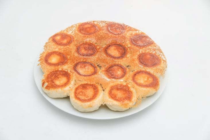 水煎包起源于东京汴梁城(古开封),用素肉碎做成的纯素肉馅更是妙不可言。