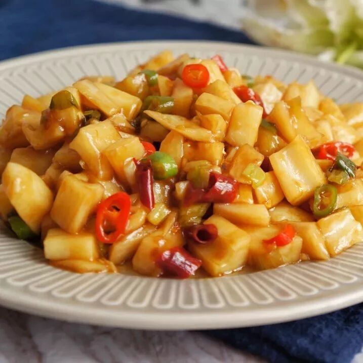7、烧到汤汁变少,将芡粉用水勾兑开,调入,收汁即可。
