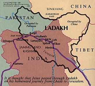 ‘拉达克省(邦国)的希米士大寺(法戒寺)仍是该地最引人入胜之观光所在,该寺年代久远,甚多传奇,其中之一为传说耶稣十四岁时曾来该地,二十八岁始离去西返祖国,从此断绝音讯,传说耶稣来法戒寺之时,名字为伊萨。’