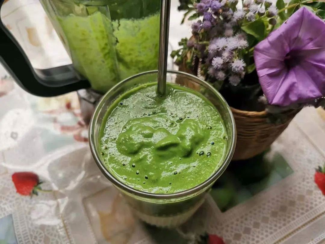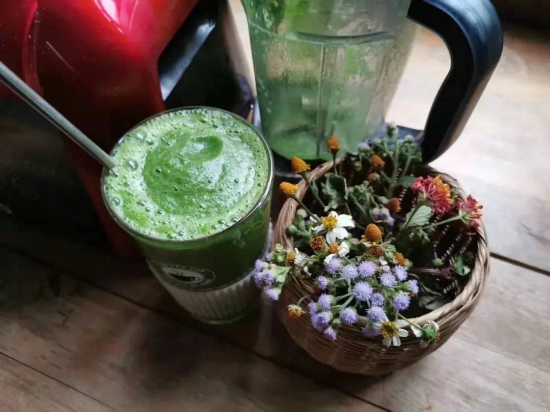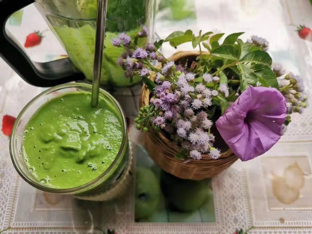 之前有用来制作蔬果沙拉: 羽衣甘蓝水果沙拉 。其实用来制作蔬果昔也不错的,搭配采的野花拍照起来,仪式感很好,让人想起 鲜花与牛粪的爱情故事。
