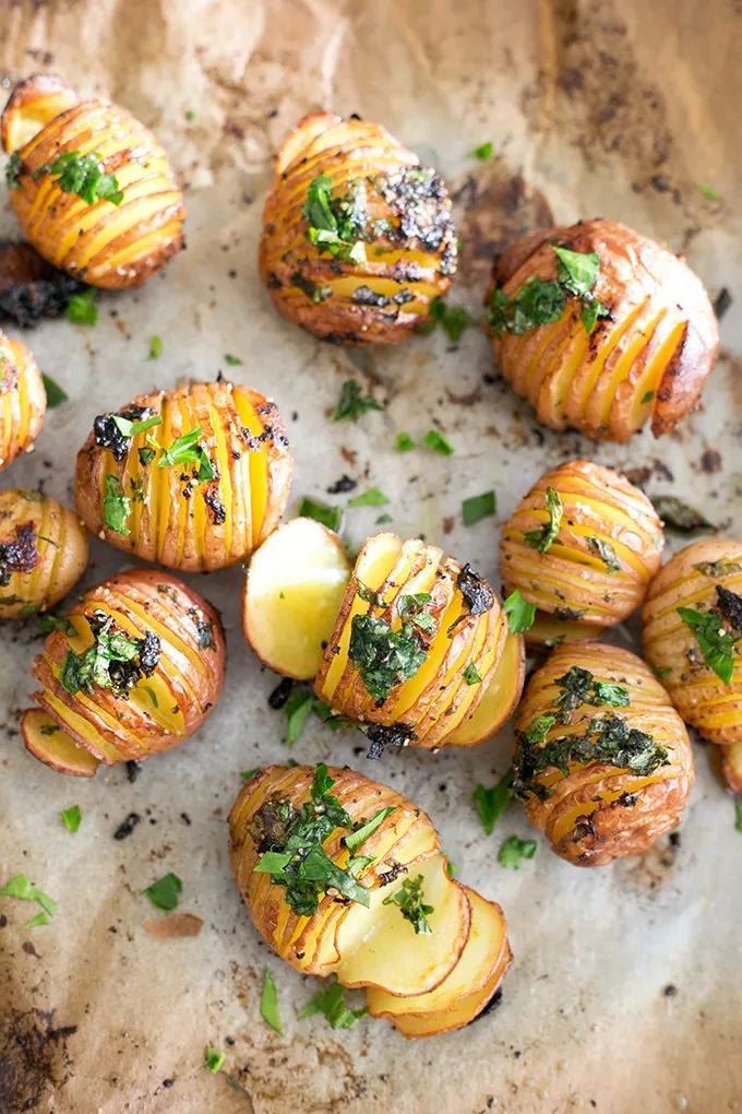 2.在每一个小土豆上开几道细缝,但不要切得太透。