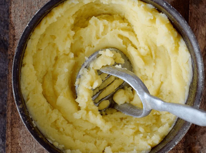 2.用盐,胡椒粉调味煮熟的土豆,随后捣碎土豆。