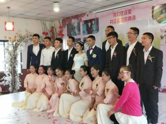伴郎伴娘团是社会上工作的和学校的学生们,每天下班后为他们编排了一个舞蹈,看哭了现场的每一位,义工代表的讲话,更是激动的热泪盈眶。