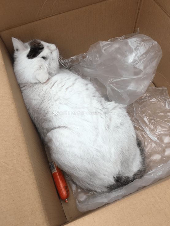 我们是在金牛区黄苑街8号接到的这只成年白猫,头上特殊的记号让我们对它影响很深,像个小汤圆却不小心漏了点芝麻出来。后来仔细检查发现它左后腿胫腓骨骨折,随后送往东门定点医院诊治。