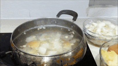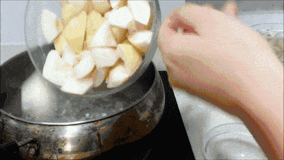 2、锅里加水煮开,雪梨入锅,再次煮沸。