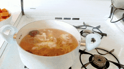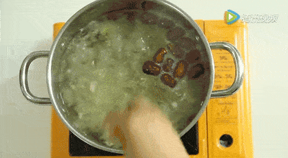 2、将银耳、木瓜和红枣一起放到锅里,加水煮开,转小火煮45分钟。