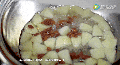 3、加入枸杞、冰糖,拌匀煮10分钟,就可以享用了。
