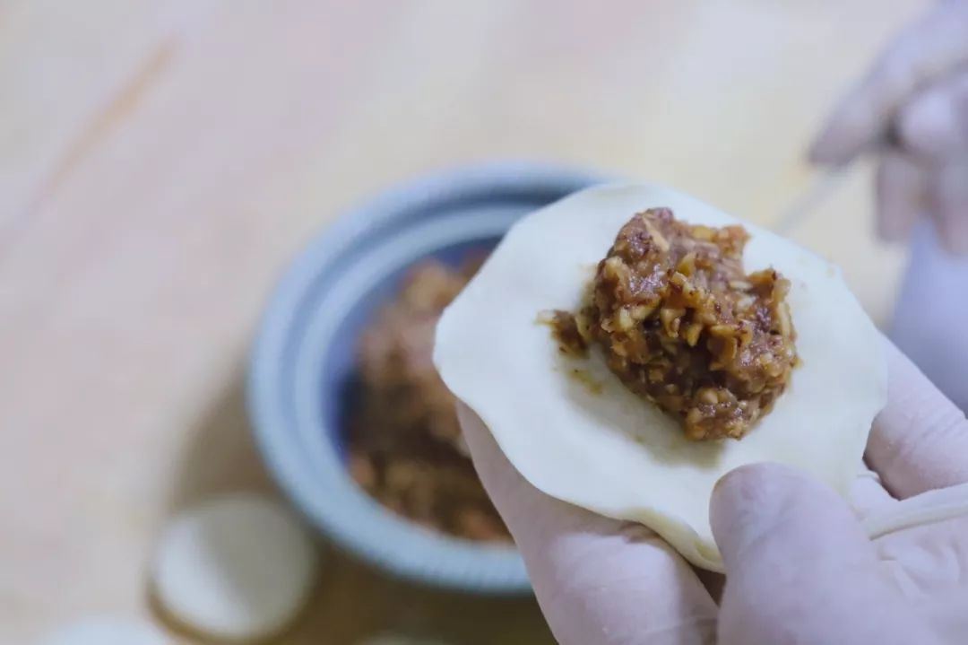 多年的经验让他精准地掌握着食材搭配的比例,面和水,馅和皮,一切都在心里默默计算着。