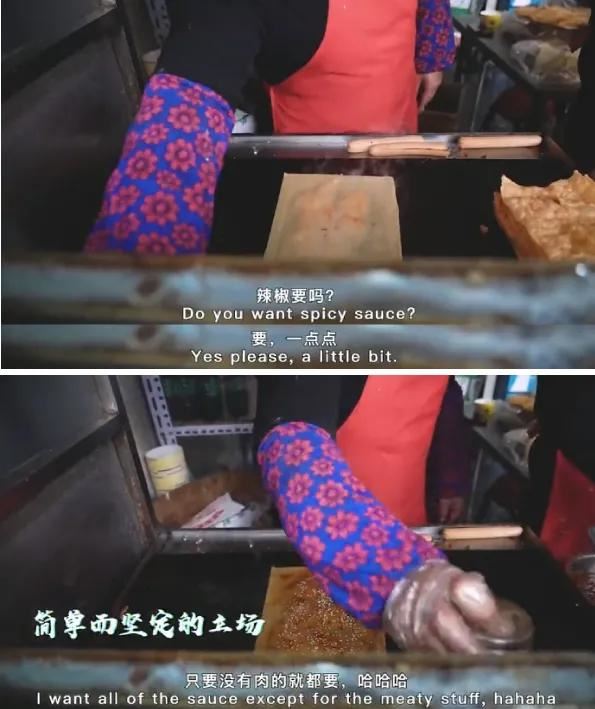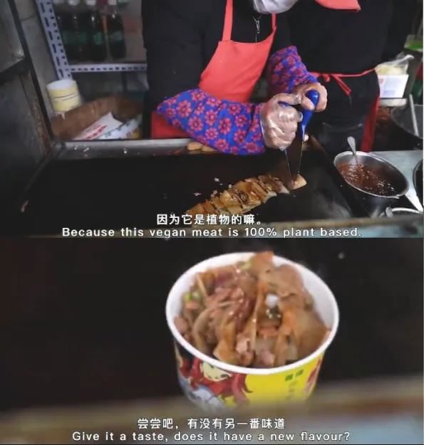 这一次,克里斯叮还吃到了加入植物肉版的烤冷面。