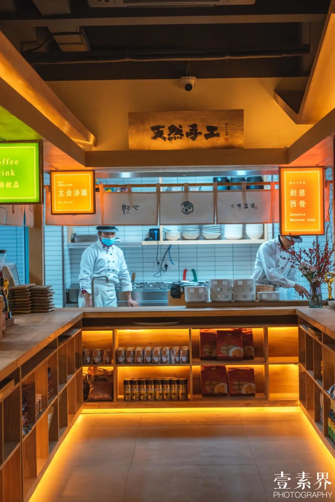 而庆春朴门也是延续了庆春系的开放式厨房风格,除了标配的七个档口:中式点心、咖啡饮品、主食汤面、川香湘辣、创意西餐、铁板煲仔、港式甜品,还增加了专属的果木炭火煨汤明档。