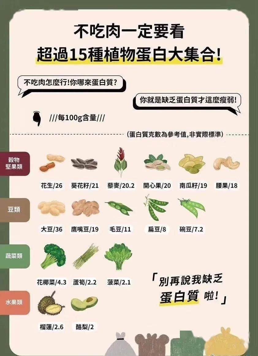 谢谢美丽的小姐姐给出的实用建议,相信会很好的帮助到新的素友们哦!下面几份科普图,不吃肉一定要看哦!