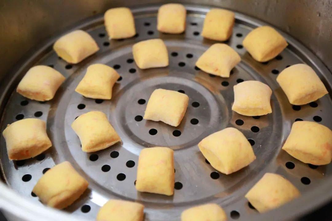 ⑨将切好的小馒头放入蒸锅中,盖上锅盖,发酵15-20分钟左右,然后开火,上气后蒸10分钟就可以关火了,接着锅盖揭一个小缝,焖3分钟左右就可以出锅了。