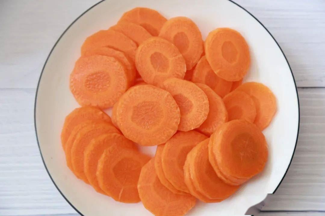 ①将胡萝卜去皮洗净,然后用刀切成薄厚均匀的片状,切好后将胡萝卜片放入蒸锅中,蒸熟变软后就可以盛出了。