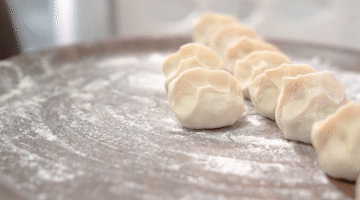 饺子好吃的重要因素之一,就是在擀面皮时,可以中间厚一些,四边稍薄一些,这样包出来的饺子馅料会足也不易破皮,更有满足感。
