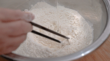 取适量高筋面粉,用温水和面,和好面用手揉搓几个来回。然后将面用保鲜膜包起来,醒面大概需要两个小时,使面足够劲道。