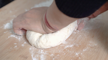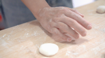 将团子顺着同一方向揉圆,顺着每一个团子横切面的位置用手掌将团子按压成圆形。